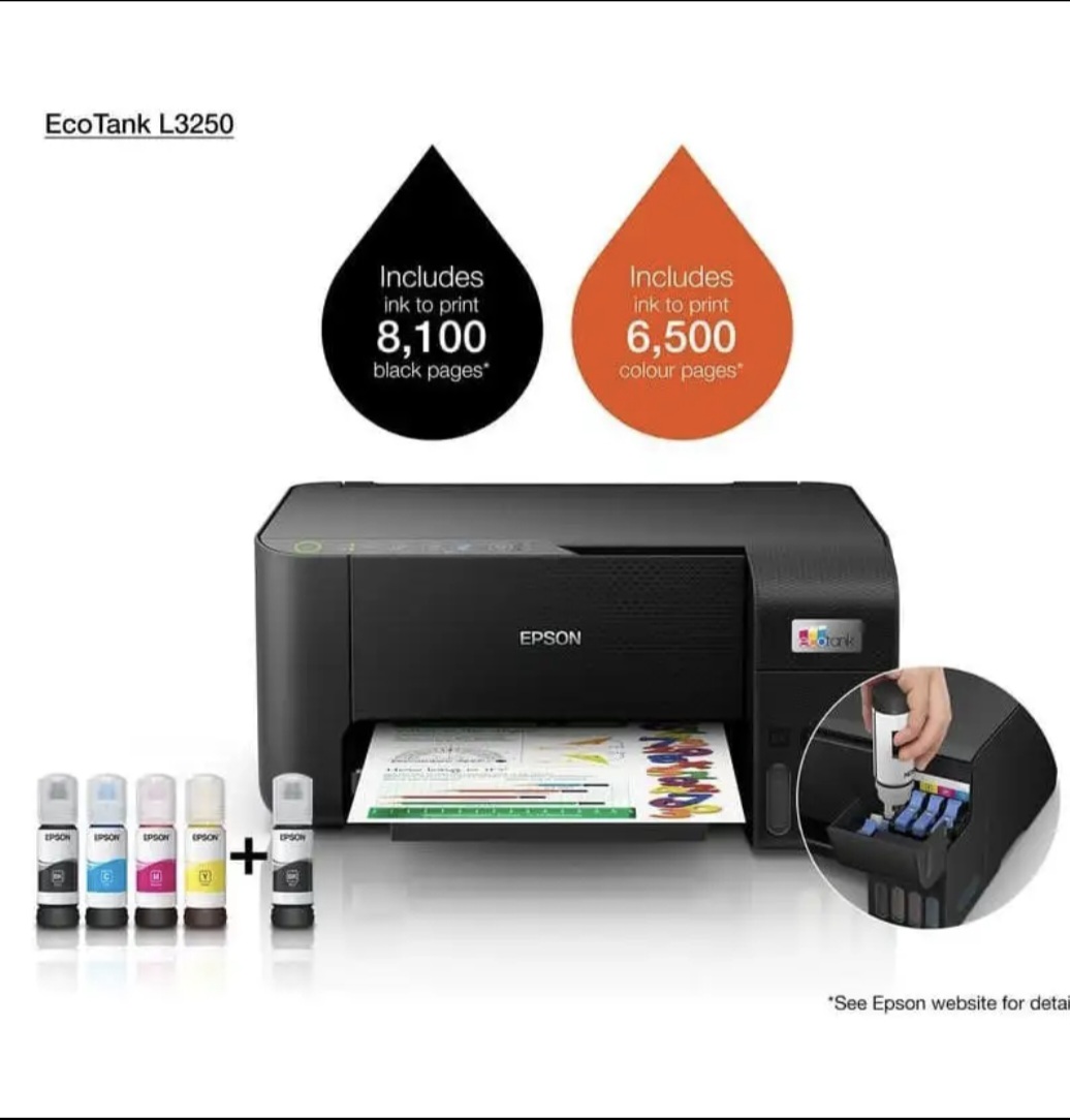 پرینتر ۳۲۵۰ اپسون ۳کاره رنگی مخزن دار حجم مخزن ۸۱۰۰برگ چاپ سیاه سفید ۶۵۰۰برگ چاپ رنگی استوک ۳۳برگ سرعت چاپ سیاه سفید ۱۵ برگ سرعت چاپ رنگی